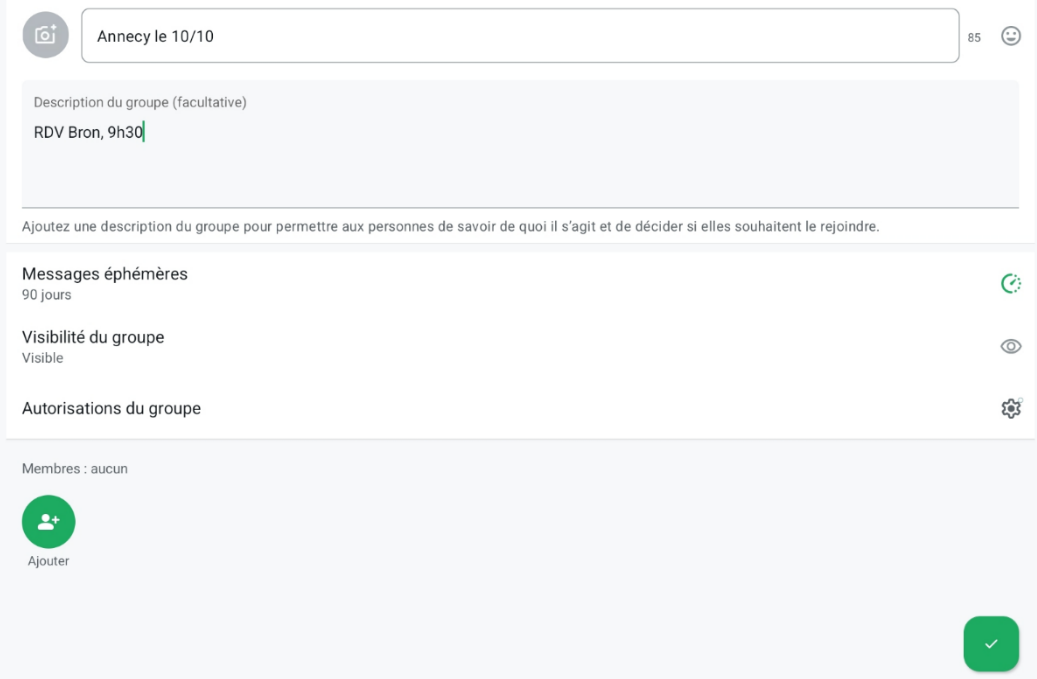 | Dans la description du groupe on pourra mettre le lieu et l’heure de rendez vous pour organiser le co-voiturage ==> |