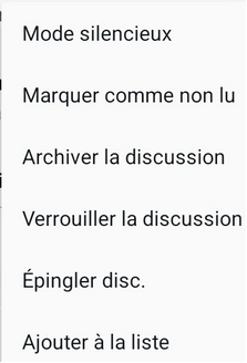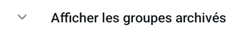 L’option « Archiver la discussion » aura pour effet de déplacer le groupe dans un paragraphe titré « Afficher les groupes archivés » :