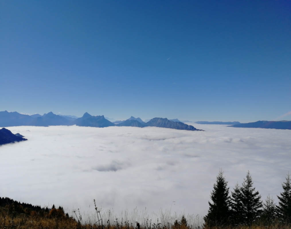 Mardi 14/10. Le ciel d'Annecy est comme la veille : couvert d'une couche de nuages à la limite (basse) de l'inversion, promise à disparaître en début d'après midi. Merci soleil. Et comble de perfection meteo-parapente prévoit un gentil petit sud ouest de 8 km/h max. Point fait avec Vito la veille (qui regrette de n'être pas dispo) : c'est le moment idéal.